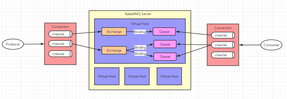 - Virtual Host:多租户与安全相关,类似于命名空间;