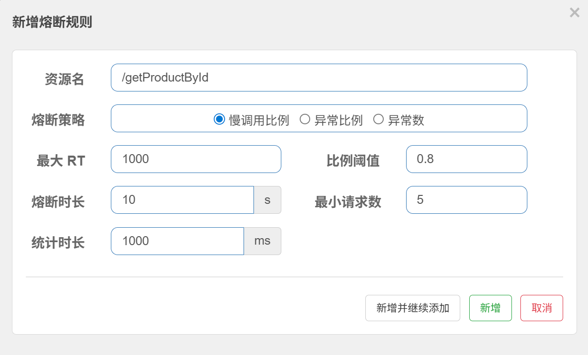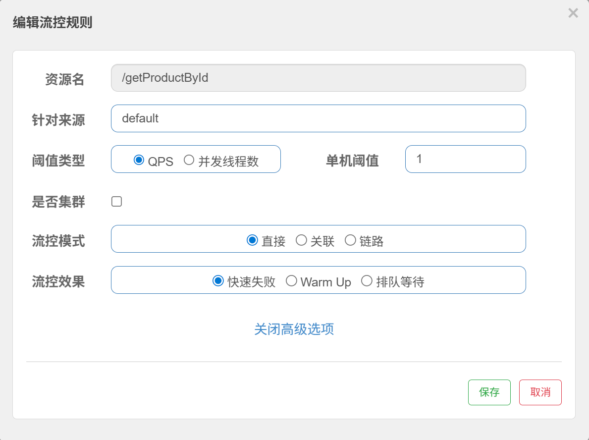 // .setControlBehavior(RuleConstant.CONTROL_BEHAVIOR_DEFAULT) // 限流效果支持快速失败和匀速排队,默认快速失败