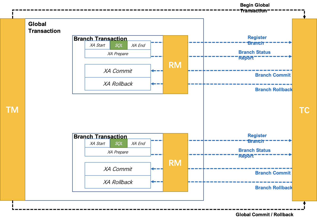 - 根据业务执行状态,TM 请求 TC 提交或回滚该全局事务;