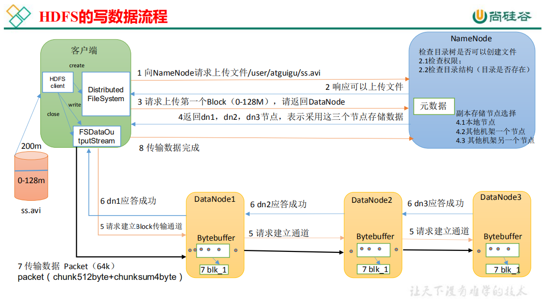 - 请求 NN 询问当前 Block 上传到哪些 DN 节点 (例如 dn1、dn2、dn3);