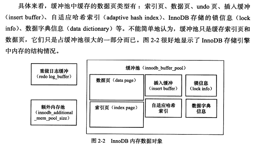 像上图有的一些没提到的,如插入缓冲、锁信息、自适应 hash 索引、数据字典信息,后面多少会提到。
