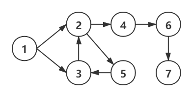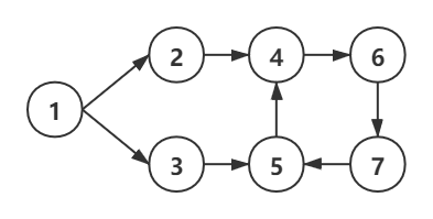 如上图,假设先选取 4,深度遍历 L={4,6,7},回溯两次回到节点 4,说明从节点 4 开始没有环路;再选择节点 1,可能出现 L={1,3,2,4,6,7},回溯到 2,再依次走到节点 5,3,当前 L={1,3,2,4,6,7,5,3},出现重复节点 3 说明出现环路。